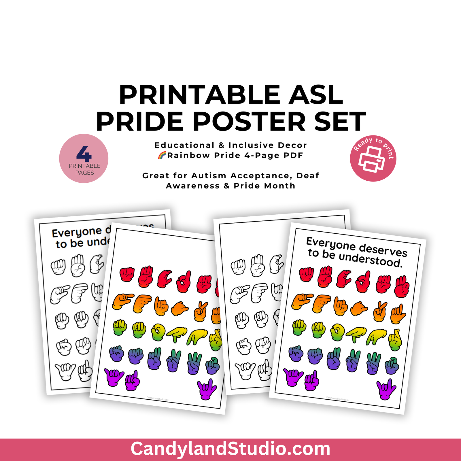 - Set of 140 rainbow hand stickers featuring the ASL "I Love You" hand shape