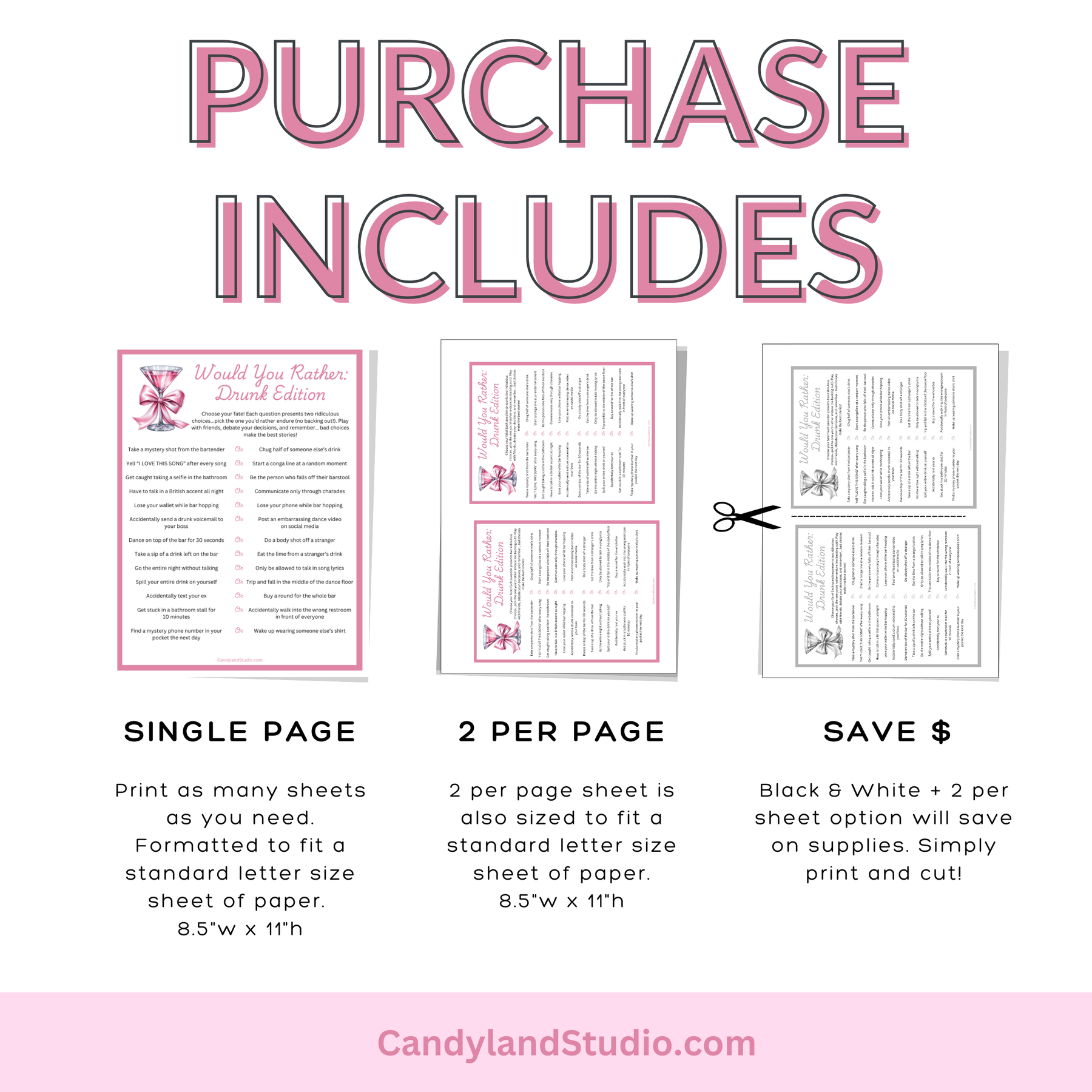 Take your girl's night out to the next level with this hilarious "Would You Rather: Drunk Edition" printable game! Perfect for bar crawls, bachelorette parties, birthdays, or any night where bad decisions make the best memories!