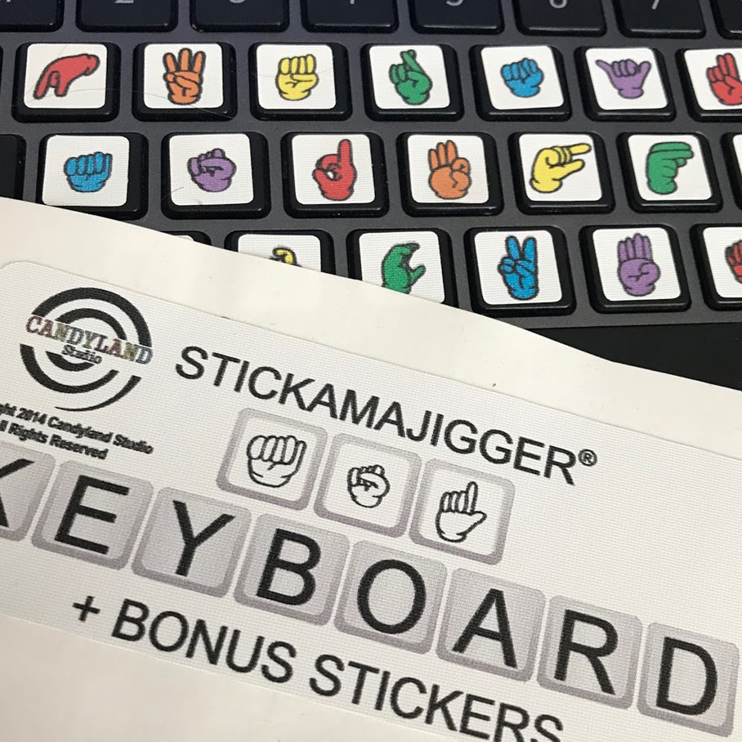 Exclusive Stickamajigger® restickable ASL Keyboard stickers include American Sign Language (ASL) alphabet hand-shapes for letters A-Z and bonus stickers you can add to your keyboard or anywhere...Simply peel and stick!