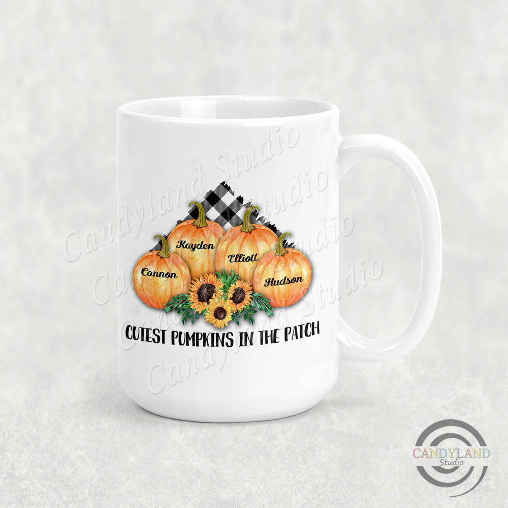 Perfect gift idea for parents and grandparents! Adorable watercolor pumpkins and sunflowers rest on a black buffalo plaid backdrop. Great for fall decor.