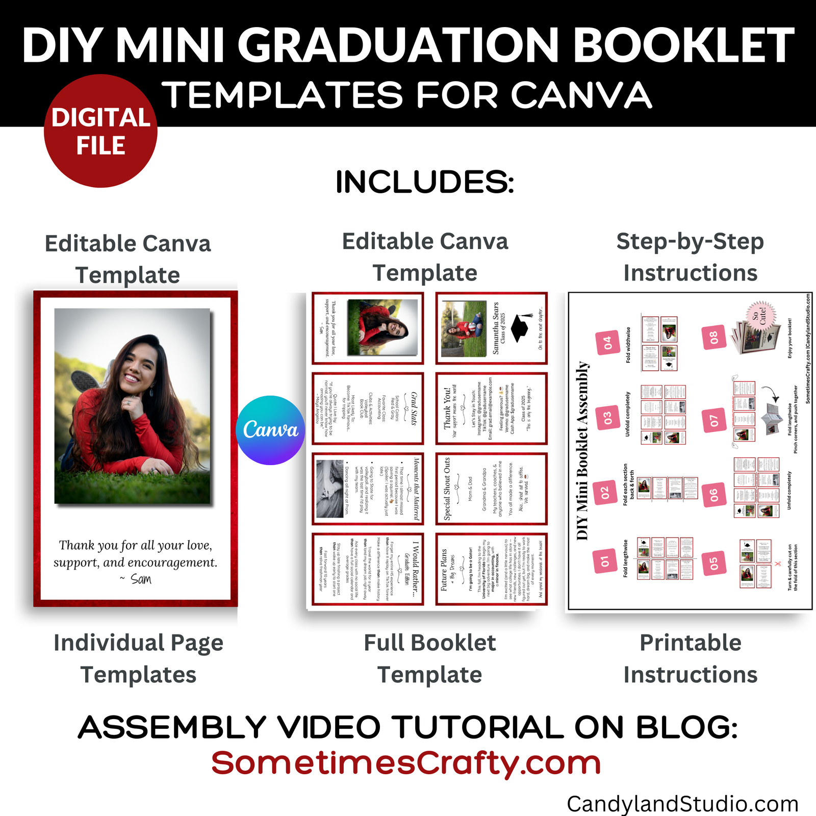 Celebrate your graduate with this DIY Editable Graduation Mini Booklet Template—the perfect printable party favor and keepsake! Designed for use with Canva, this customizable template lets you easily create personalized booklets featuring photos, messages, and special memories from a single standard sheet of paper.
