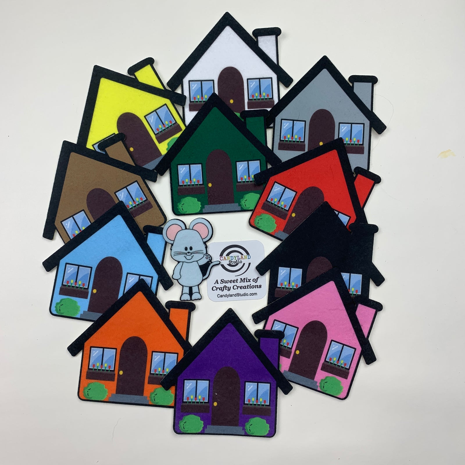 This Little Mouse in the House flannel board set features a cute little mouse and 11 different colored houses for a total of 12 pieces once cut.